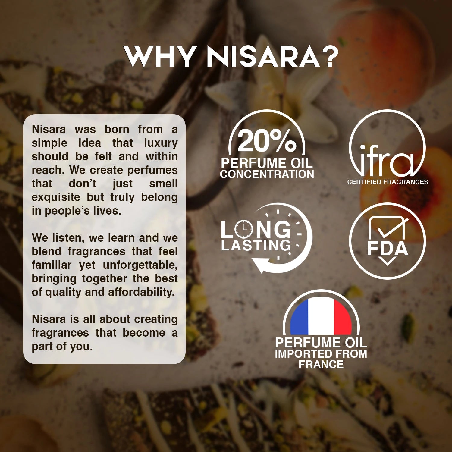 Dubai Kunafa by Nisara is not just a perfume, it’s a scent you can almost taste. With notes inspired by a beloved Middle Eastern dessert and a finish as sweet and lasting as chocolate, it invites you to indulge in a new kind of olfactory pleasure. Bold, addictive and utterly unique, Dubai Kunafa captures Dubai’s vibrant spirit, one delicious spray at a time.