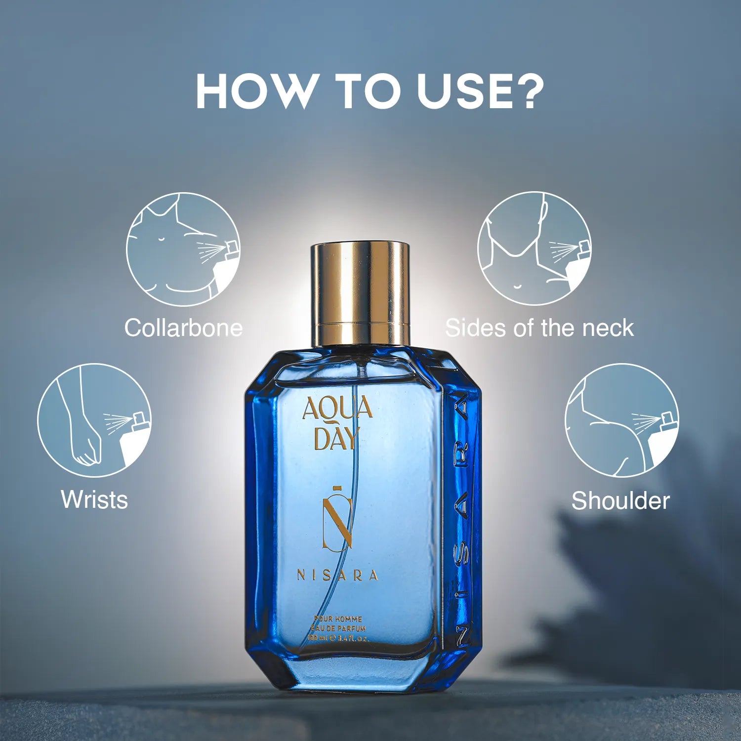 Aqua Day is designed to capture the effortless confidence of a man who always feels fresh whether he’s starting his day with purpose, stepping into a meeting.